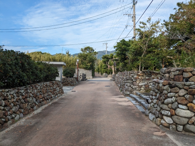 この手打には、上甑島の里(さと)と同じように武家屋敷が集まっています。武家屋敷通りでは約700メートルに渡りが玉石垣がずらりと並んでおり壮観です。