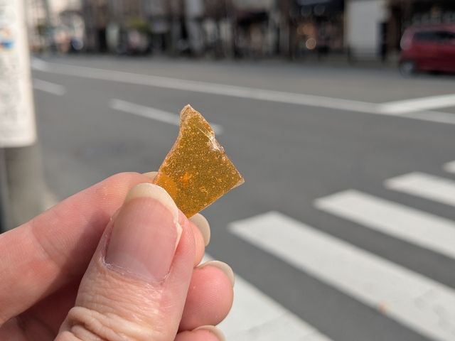 めっちゃ甘いのではと思ったのですが、意外にも優しい甘さ。砕いたタイプの飴ですが、大きさも食べやすくちょうど良い感じです。