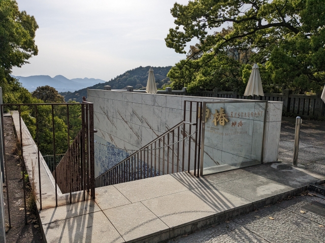 こちらはカフェ&レストラン 神椿。資生堂がプロデュースしたパーラーであり、利用者は500段目の駐車場に停めることができます。ここから本殿までは285段とかなりのショートカット。