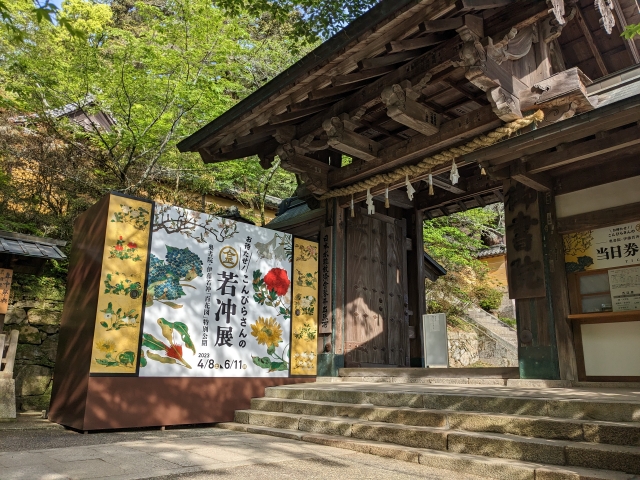 書院の見学には拝観料が必要。「こんぴらさんの若冲展」を開催中のようですが、まだオープン前でした。