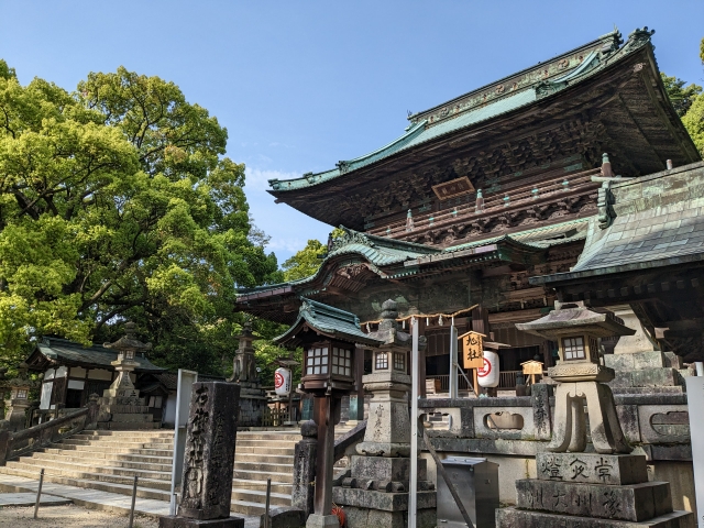 菅原神社に到着。その名の通り、御祭神は菅原道真。道真は讃岐国司の長官である「讃岐守」もつとめており、4年ほど讃岐で暮らしていたという歴史があります。