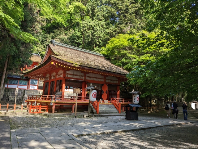 ここからは少し平坦な桜馬場と呼ばれる道。春先に訪れると、道の両側に植えられたサクラが咲き乱れ、参道を華やかに彩ります。宝物館もすぐ近くにあります。