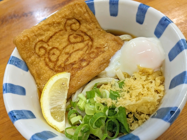 2018年、ウドンと響きが似ているというびっくりな理由でヤドンが「うどん県PR団」に任命。その活動の一環として、県内のうどん屋さんではこの「ヤドンのお揚げ」を取り扱っています。じゅわっと分厚い大きなお揚げはたまりません。