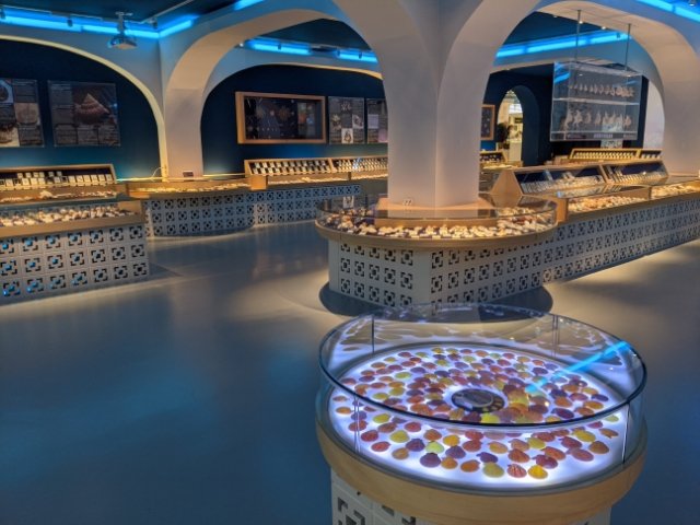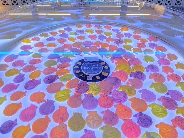 入館者を最初に出迎えるのはシェルミュージアム。世界各国から集めたという10,000点以上もの貝が並ぶフロアです。貝殻を展示した施設は日本各地にありますが、どこよりも写真映えする仕上がりになってます。