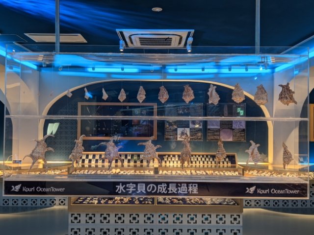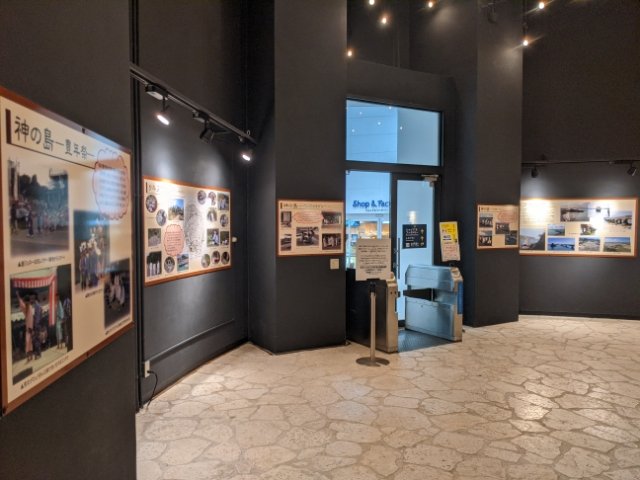 1階のエレベーターホールには古宇利島の歴史や観光スポットのパネルが並び、古宇利島資料館となっています。実物の資料などが無いため見応えはあまり無いですが、パネルの内容はわかりやすく面白いです。
