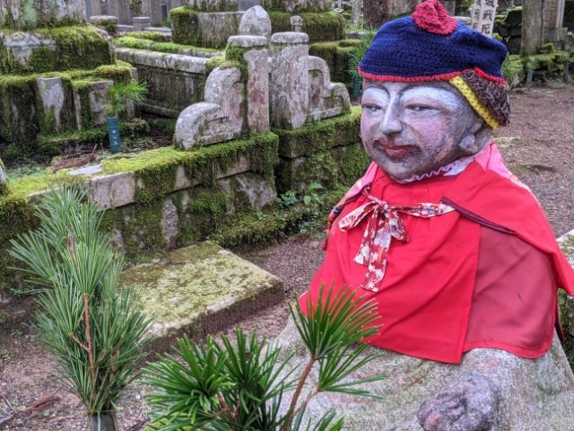 こちらのひときわインパクトのあるお地蔵様はお化粧地蔵。お参りの際にメイクを施すと願い事が叶うといわれているため、アーティスト感あふれるルックスとなっています。メイク道具は供えられていなかったので、持参するのが良さそうです。