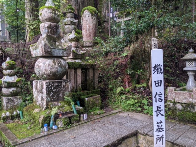 織田信長の墓所。戦国時代に武装化していた高野山と信長は敵対関係であったはずなので、少し意外・・・!敵も味方も無い、という考えなのでしょうか。参拝に訪れる人は多く、供えられた鬼ころしに妙に納得してしまいました。