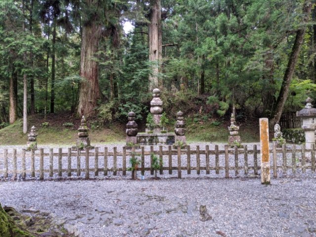 豊臣秀吉を筆頭とした豊臣家の墓所。参道から一段高い位置にあり、少し特別感があります。他の武将とは異なり、家族一同が並んでいるのが秀吉らしいです。