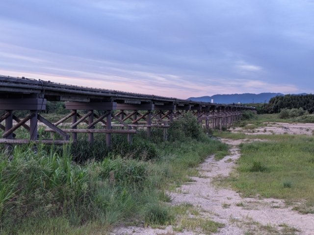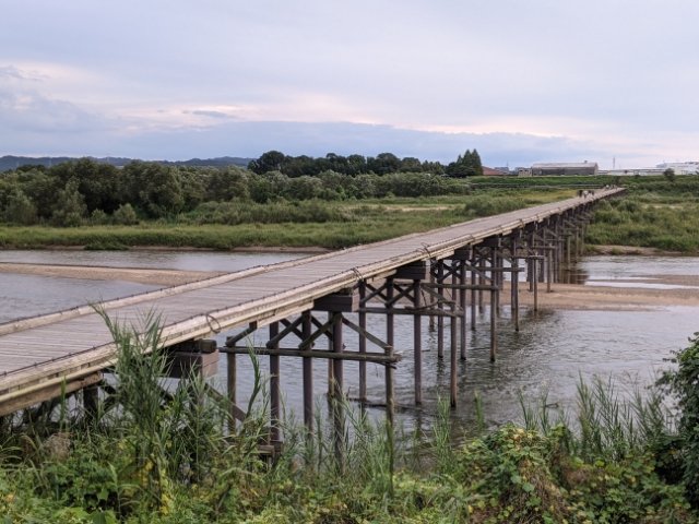 流れ橋から永久橋へと作り変える意見も出たようですが、橋面を高くしたり、コンクリート構造を取り入れたりといった改修に落ち着いたようです。