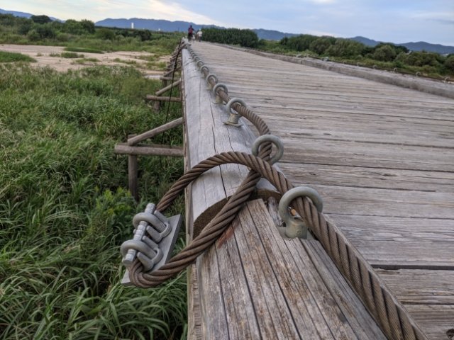 実際に橋をよく見ると、橋板はワイヤーロープでしっかりと繋がっています。