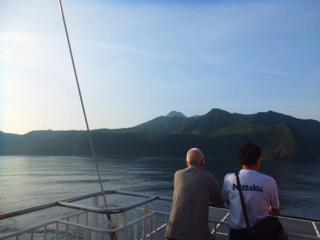 船内で朝ごはんのパン食べながら、大阪のおっちゃん&へべれけおじさんコンビと話しました。このおじさんたちは、島へ降りたは良いものの、最初の登り坂を見て島内観光は諦めたらしい・・・。