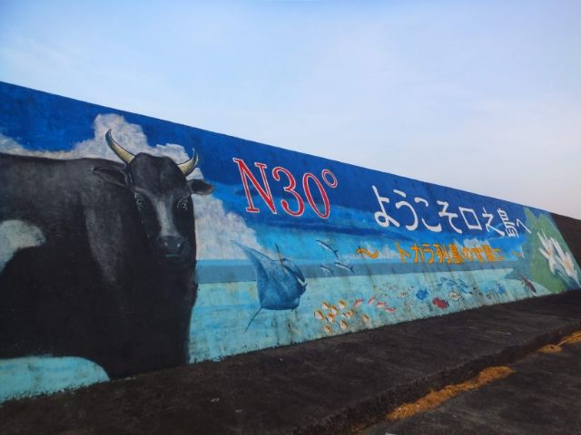 描かれているのは「口之島牛」、そして「N30°」。口之島には北緯30度線が通っております。かつて第二次世界大戦後、北緯30度以南、すなわち口之島以南がアメリカ統治となっていた時代もあるのです。