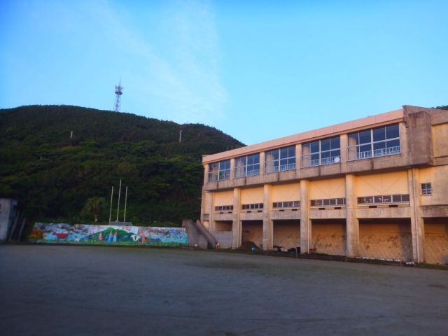少し歩くと、小中学校を発見!レントゲン便に乗っていた鹿児島テレビが撮影を行っていました。あとでスタッフさんに聞いたのですが、各島の子供たちと中継つないでいるらしい。