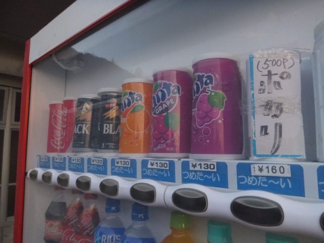 早朝なので、とても静かな口之島集落。離島らしく、昔ながらの空気が流れる町並み。自販機のポカリは手書きという味わい深さです。