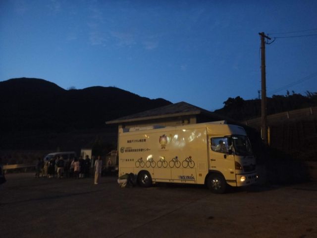 船からは住民健康診断のためのレントゲン車が降りてきました。他にも様々な作業者が島の中へ走り抜けて行きます。非日常な出来事は、眺めているだけで楽しい。