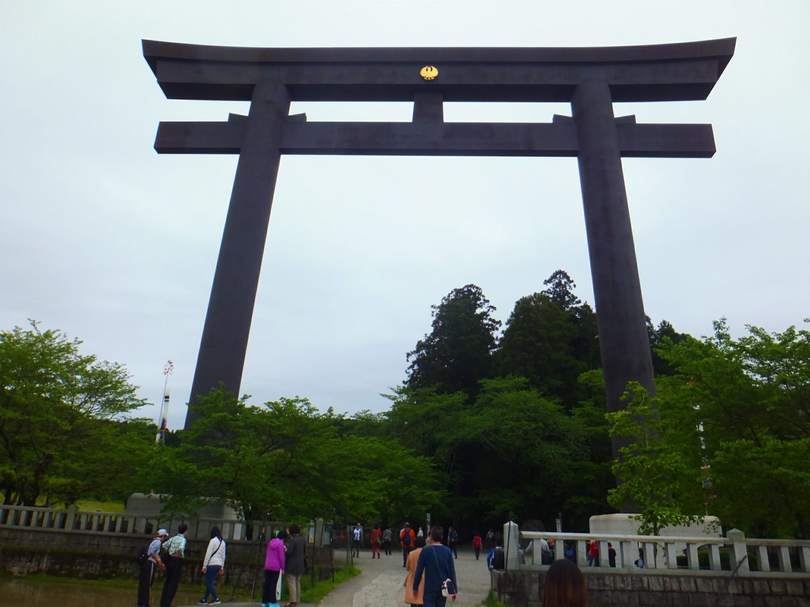 鉄筋コンクリート製で灰色一色の鳥居は、熊野本宮大社の持つシックな魅力とぴったり。