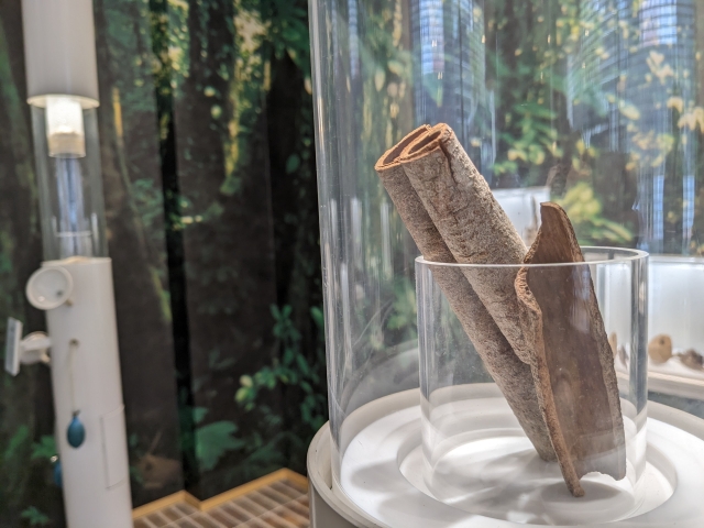桂皮というのは「シナモン」のこと。「桂皮」「麝香」の他に、「乳香」「山奈」「竜脳」の5種類が展示されていましたが、やっぱりシナモンが一番なじみました。