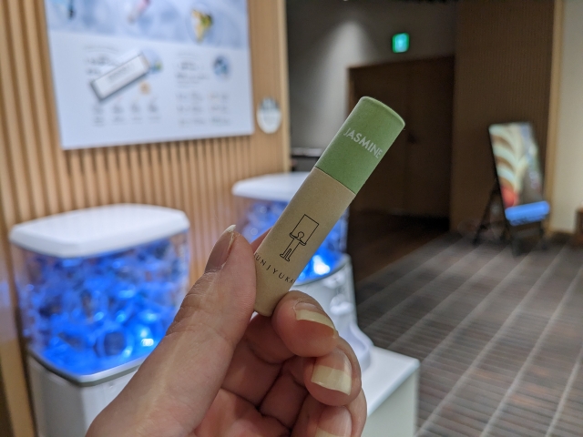 出てきたのは「ジャスミン」のお香。そのまま嗅いでみると、すっと落ち着く香りが広がります。家に帰って火をつけるのが楽しみです。