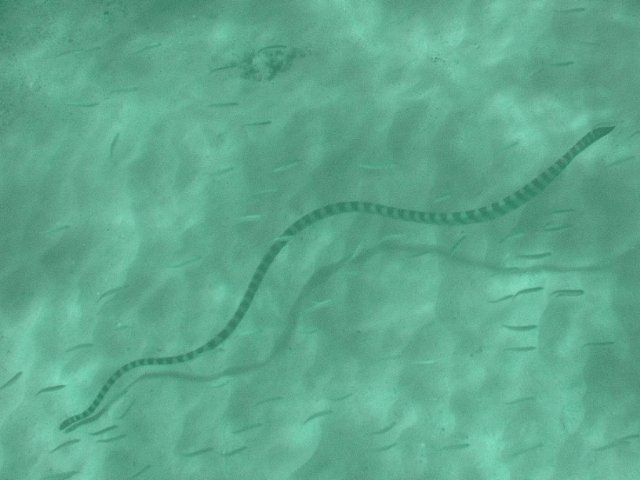 ウミヘビ発見!!有毒生物なので一瞬ドキッとしますが、近寄ってくることはなく素通りしていきます。触ったりしなければ大丈夫。