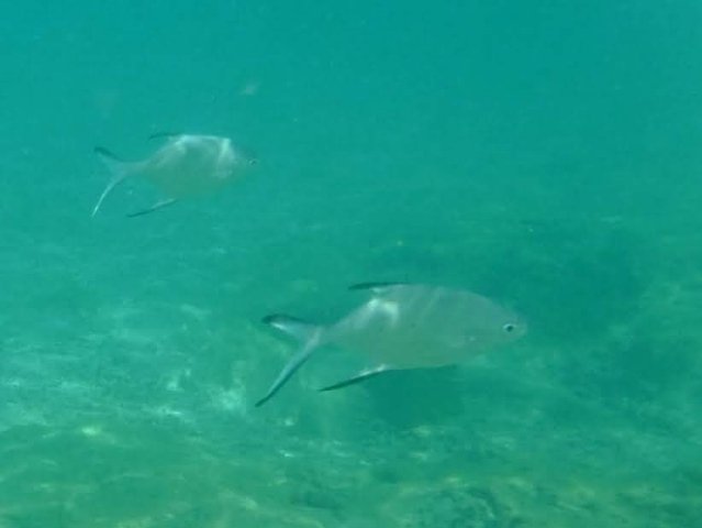 水面付近をすいすいと泳ぐコバンアジ。逃げるかと思いきや、けっこう近寄ってきてくれます。