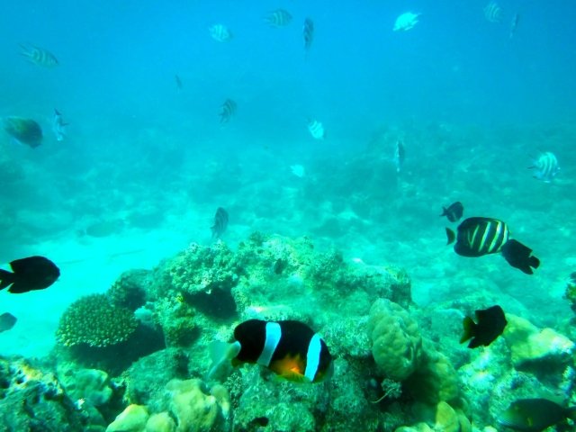 クマノミもいました!シュノーケルではぜんぜん珍しい魚ではありませんが、かわいらしい姿なのでやっぱり見つけると嬉しいです。