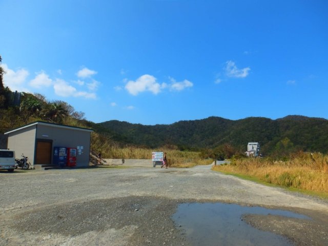 駐車場は広々してます。自販機はあるのですが、トイレ、シャワーはありません。それっぽい建物があるのですが、封鎖されております。