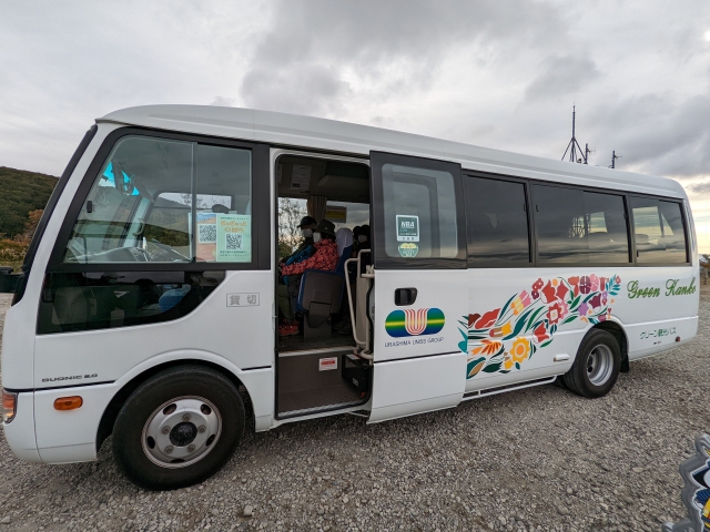 たまたま来ていたシャトルバスに乗車。複数台でピストン運行しているので、たとえ乗り過ごしてもそれほど待たずに次のバスが来てくれます。