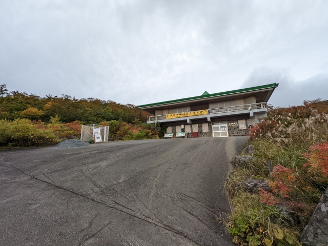 10:50 登山口に到着!朝は営業していなかったレストハウスがオープンしてます。食堂・売店が入っており、カレーやラーメンといった、登山後に食べたくなるようなメニューがそろっています。靴洗い場やトイレもありますので、登山後の整理ポイントとして立ち寄りがおすすめ。