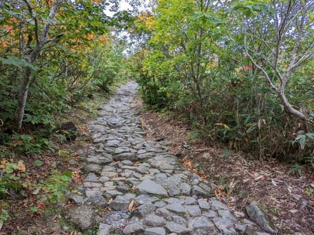 序盤は石畳の道が続いており、とっても歩きやすいです。ただし、傾斜はけっこうあるので、バランスを崩さないように注意が必要です。