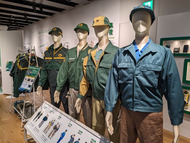 ちょっとした体験も楽しめるのが「宅急便が届くまで」というエリア。並んでいるのは、歴代の制服制帽。この制服制帽を纏うというスタイルは、トラック運送業界では前例のないことであったそうです。