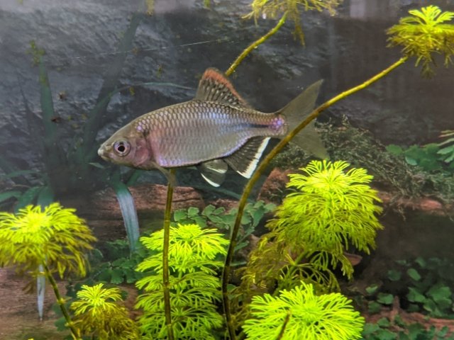こちらのサカナはセボシタビラという、筑後川に棲むタナゴの仲間です。腹ビレと尻ビレに白い線が入っているのは産卵期限定のカラーリング。