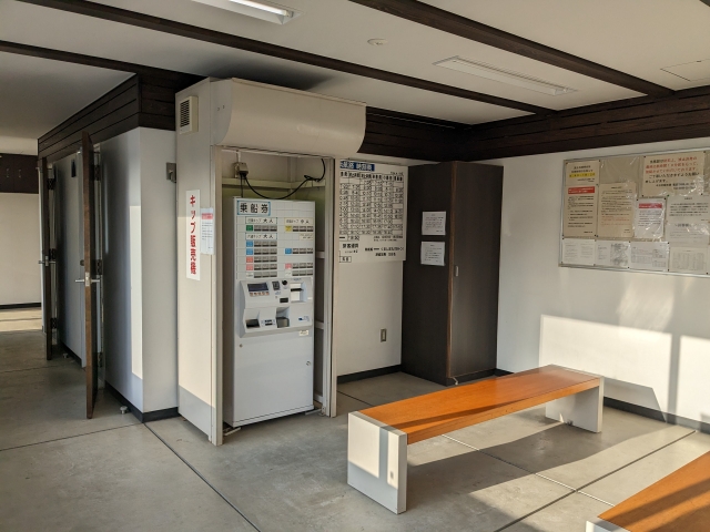 待合室は小さいけれどとってもきれい!トイレも屋内型でかなりきれいに掃除されています。待合室およびトイレは船の出港に合わせて開くため、早朝や夜間は利用できないのでご注意ください。