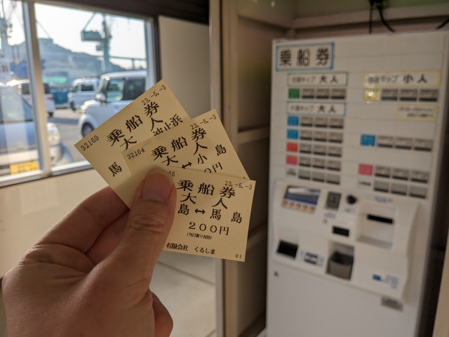 チケットは待合室内の自動券売機で購入できます。離島間のチケットも買えるので、一度に買ってしまっても大丈夫。ただし、片道や往復、島の名前が間違えやすいのでご注意ください!私は盛大に間違えました!!!