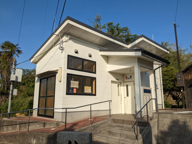 桟橋から少し離れたところにはトイレ付きの待合室がありました。おそらく島で唯一の公衆トイレなので、ここで済ませてから散策しましょう。