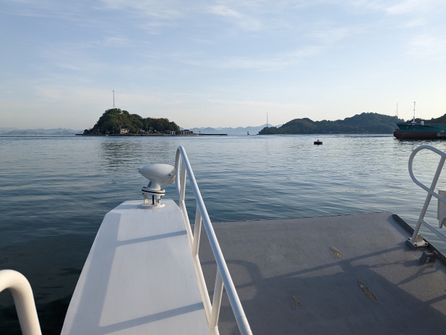 波止浜港を出ると、すぐにぽつんと浮かぶ姿が見えてきます。