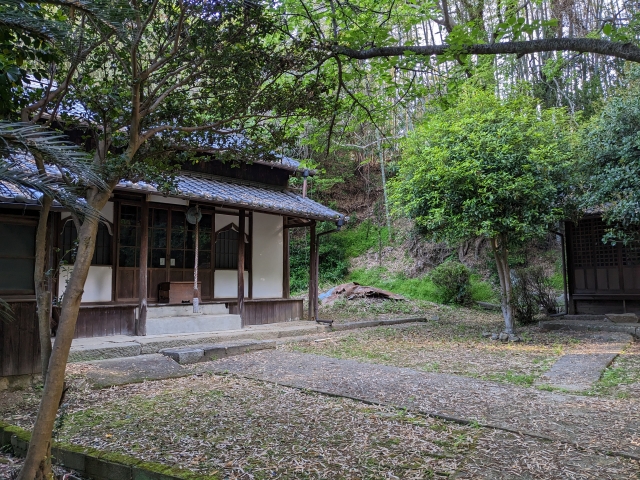 まっすぐ進むと、城主の館跡である心月庵が見えてきます。薬師如来らしき本尊が安置されています。