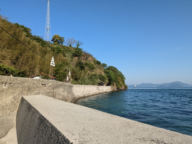 しまなみ海道周辺の離島ですが、架橋されていないため船に乗る必要があります。発着は今治市の波止浜(はしはま)港。今治駅からバスで約20分ほど、波止浜駅から歩いても20分ほどです。