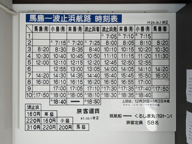 本日3度目となる「くるしま丸」に乗船。1回目のときに乗船券はまとめて渡しているので、やっぱり顔パスで乗船OK。