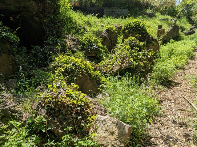 遊歩道の最も奥となる砲台跡。これまでの場所はいずれも保存状態良好でしたが、なぜかここだけかなり破損しています。まさか太平洋戦争時に爆撃を受けたのでしょうか?