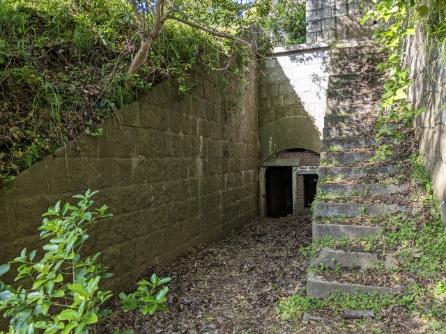 発電所跡のそばにあるのは、馬島ー糸山間を防備するための南部砲台跡。アーチ状の入口の部屋は兵舎のようです。