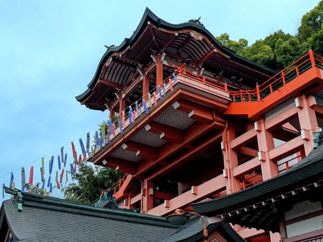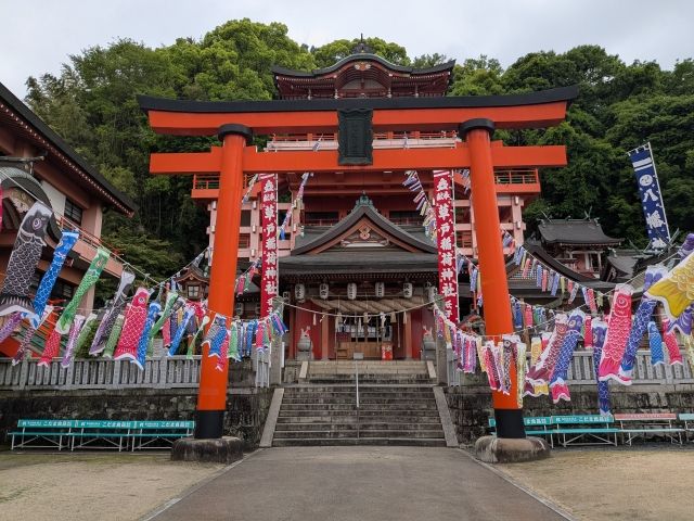 5月であったため、たくさんの鯉のぼりが飾られておりカラフルで華やかな印象。祝日だというのに参拝者はほぼゼロ。とっても静かな境内です。