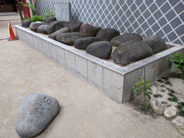 たくさん並んでいるこの石は「力石」。力士が奉納しているもので、よく見ると石に名前が書かれています。