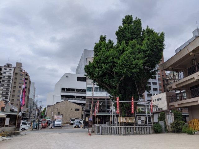 境内に生える大木は、「櫛田の銀杏」とよばれる樹齢約1000年のイチョウ。不老長寿の御神木として信仰されているそう。