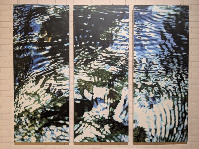 きらきらと光が反射する水面。まるで写真のような姿ですが、描かれた絵画。よく見ると絵の具の塗り合わせや筆の跡も見ることができます。