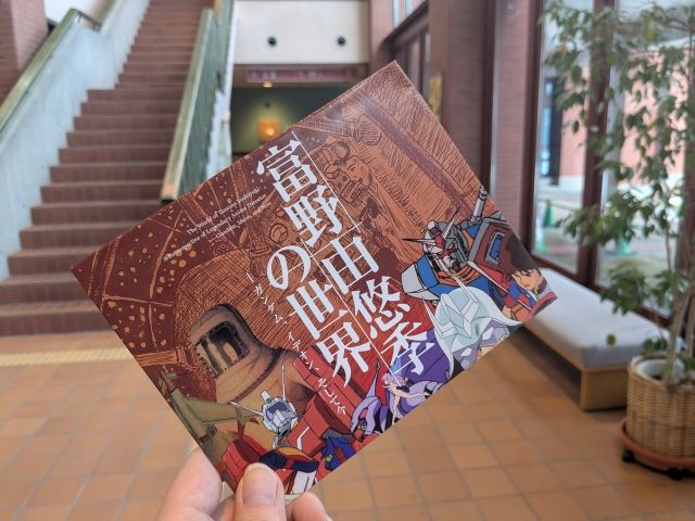 展示室はそれほど広くないので、ゆっくり見ても1時間弱といったところ。帰り際にショップでポストカードを買ったら、包装紙がなぜか「富野由悠季の世界」でした!ボランティアで過去の様々な美術館チラシを活用しているそうです。