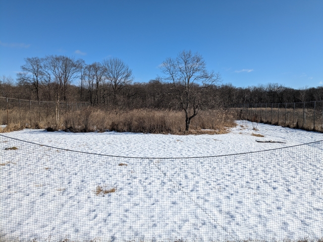 各スペースはけっこう広々としており、自然環境がそのまま。背の高い藪が生い茂っているため、タンチョウが隠れて見えないこともあります。