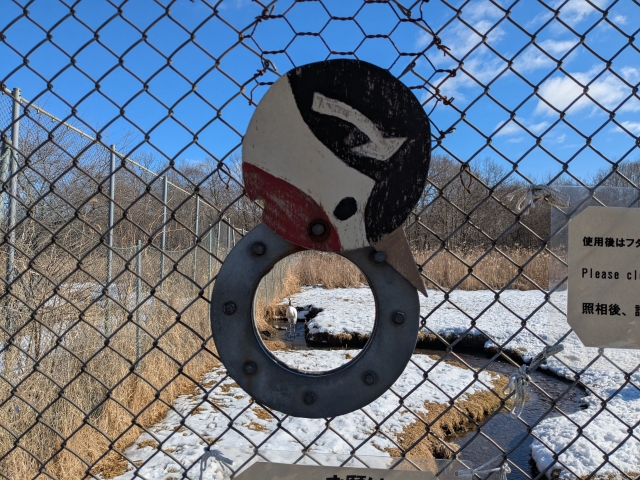 フェンスには撮影用の窓も。フェンスの映り込みを気にせず、タンチョウを撮影することができます。