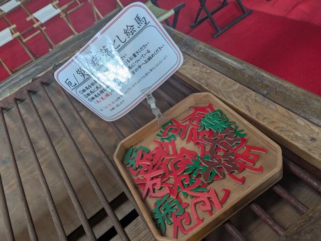 くり抜いた文字は、お賽銭箱のそばの三方へ納めるのがならわしであるそう。