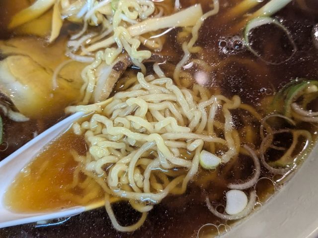 釧路ラーメンの特徴というのが、醤油ベースのスープとこの細い縮れた麺。ここでは釧路の老舗・高橋製麺の麺を使用しているそうです。せっかちな漁師のために茹で時間を短くするため細くなったという説や、当時のかつお出汁のスープに合わせるために細くしたという説も。