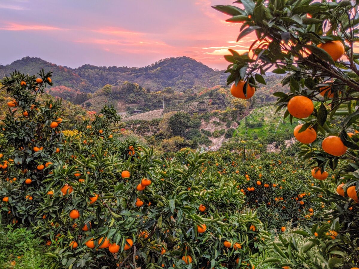 さらに夕陽もキレイに見えます!夕陽を浴びて輝く温州みかんがお見事。離島とは思えない壮大な景色が楽しめて大満足です!
